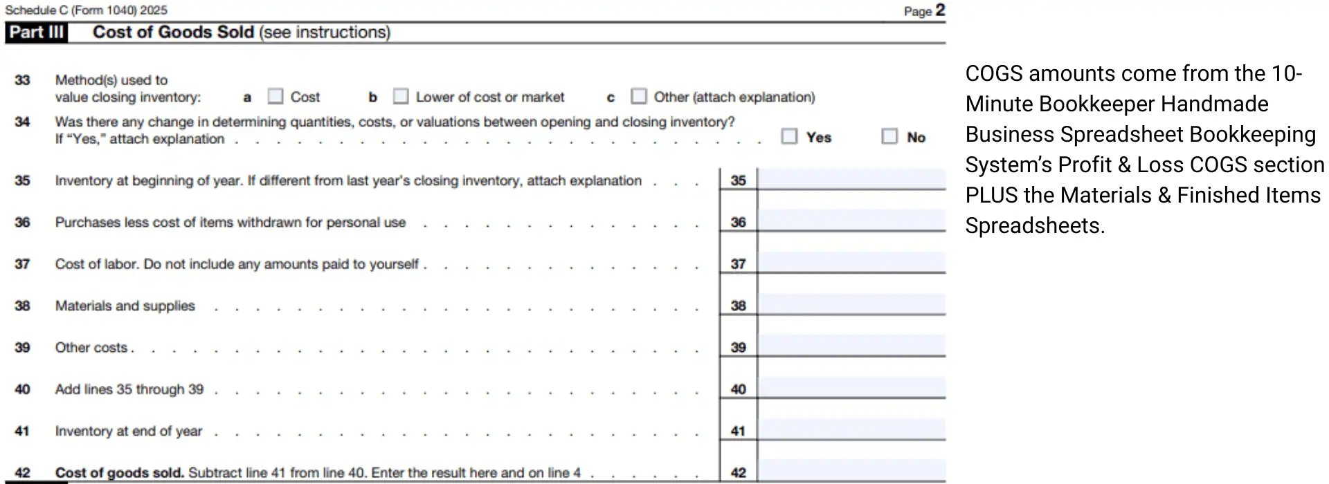 Schedule C, Part III-Cost of Goods Sold