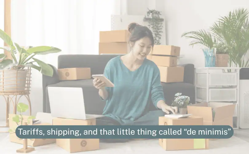 I know your inbox is bursting at the seams and your to-do list is longer than a grocery store receipt – but we’ve gotta talk about something that could shake up your handmade business: tariffs, shipping, and that little thing called “de minimis.”